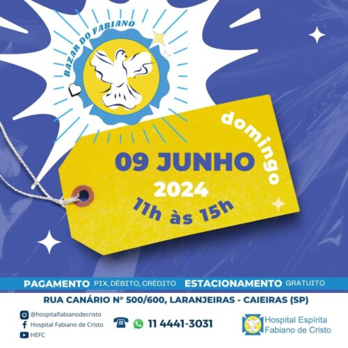 O Bazar do Fabiano do próximo mês será no domingo 09/06 das 11h às 15h, com 20% em todas as roupas do brechó, incluindo roupas de inverno e festas. Vem conferir os preços especiais.