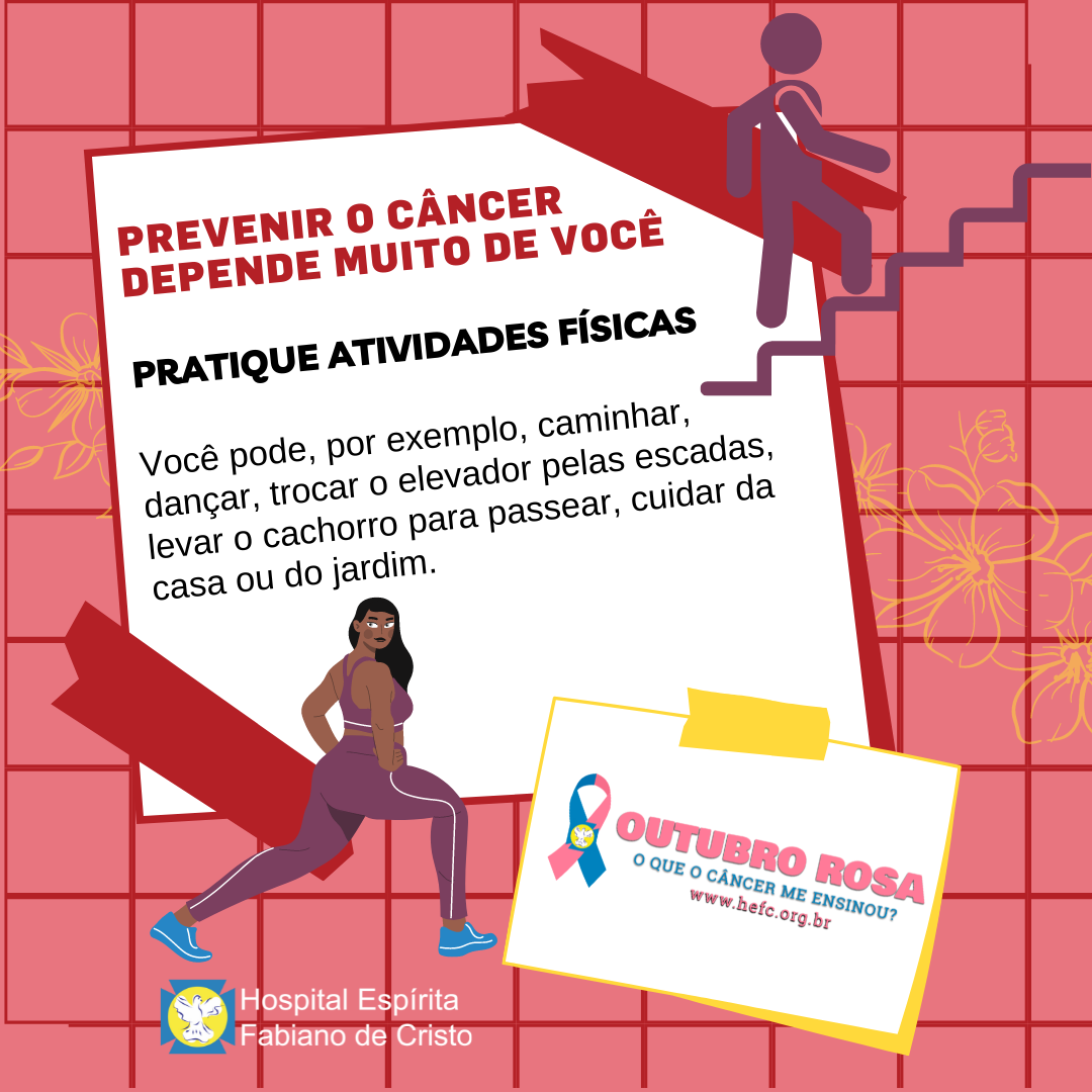 A campanha Outubro Rosa divulga informações sobre prevenção do câncer, já que prevenir ainda é o melhor a ser feito, além de trazer informações sobre ações voltadas ao Outubro Rosa que visam o esclarecimento sobre o tema e também podem trazer conforto para quem está passando por algum tipo de tratamento e iniciativas com a Equipe HEFC e parceiros.